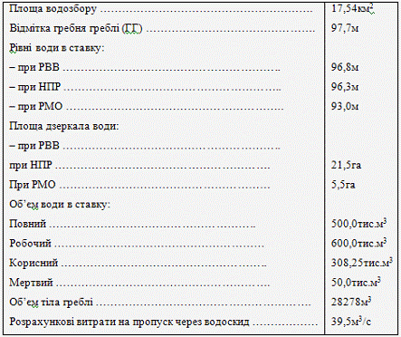 шлюзу або трубу для забору води iз ставка. РМО - це рiвень водойма, нижче вiд