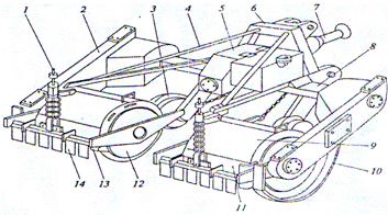 передний дисковый корпус ; 13 - рыхли тельная лапа ; 14 - дерносним ; 15 -