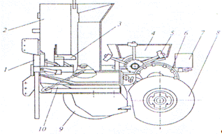 балластный ящик ; 8 - стабилизирующие колесо ; 9 - сошник ; 10 - пружина