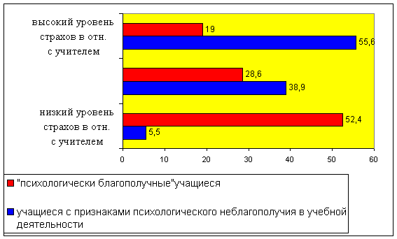 учебной деятельности достоверно чаще встречается высокий уровень страхов в