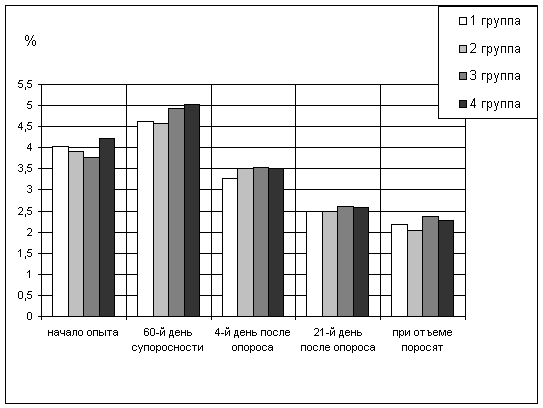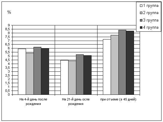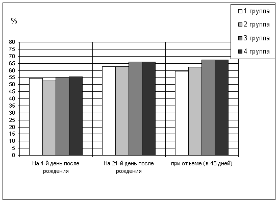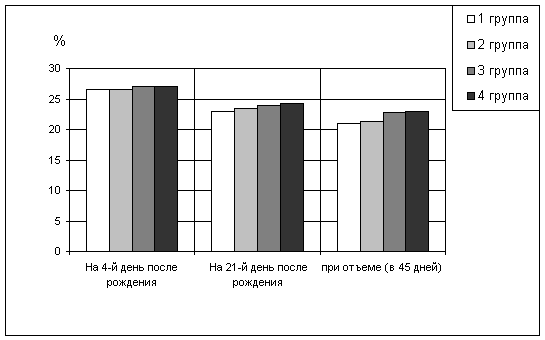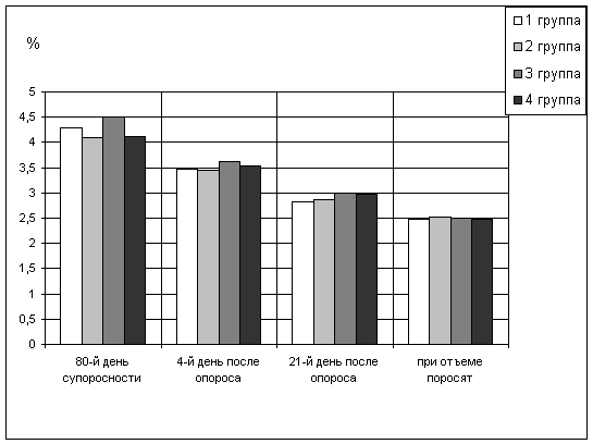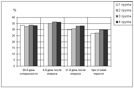 поросенка, количество поросят в гнезде при отъеме - на 0,4 головы и живую массу