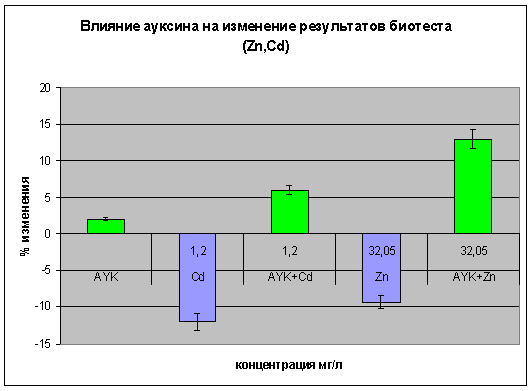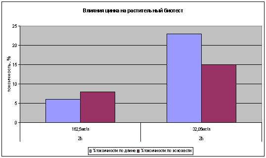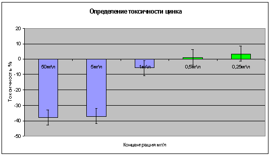 концентрации цинка 32,05 мг/л токсичность равна 10-25%, что выявлено как по