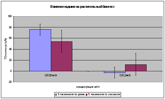 1,2-120 мг/л. Установлено, что высокая концентрация кадмия 120 мг/л вызывает