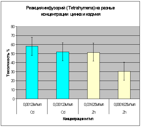 инфузорий при длительном взаимодействии с кадмием и цинком. При концентрации