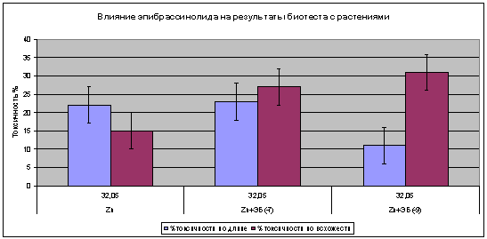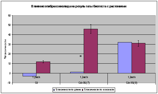 использовании фитогормона эпибрассинолида с концентрацией кадмия 1,2 мг/л на