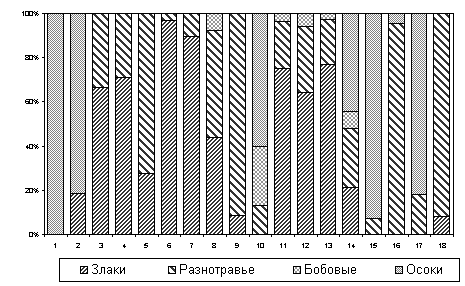 составе травостоя. Размер учётных площадок составлял 1 м2. Травостой