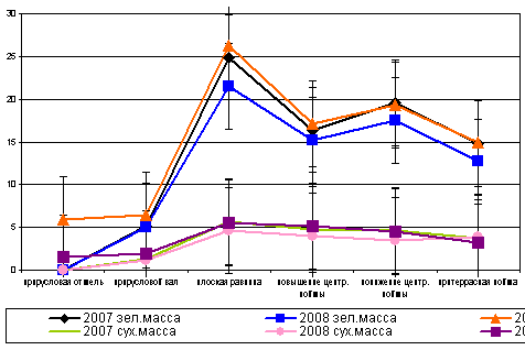 Общая продуктивность (по воздушно - сухой массе) прирусловой
