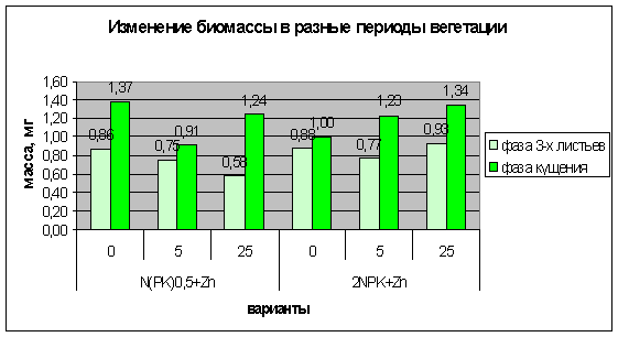 · влияние цинка на накопление биомассы растений;