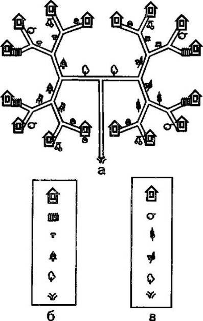 Материал для задач 5 и 6 методики «Схематизация» (а - полянка; б, в - «письмо»)
