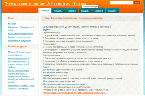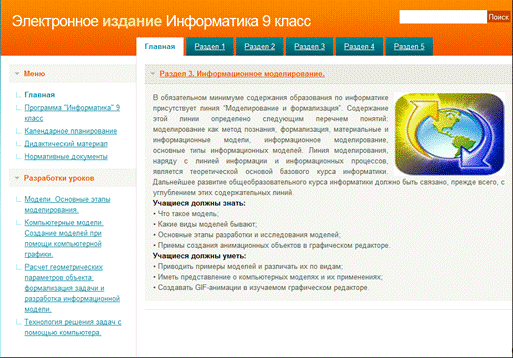 модели электронного издания по предмету информатика для учащихся 9-го класса.