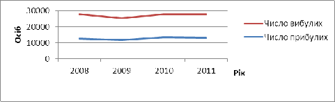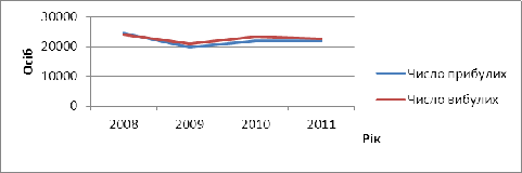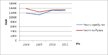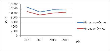 період 2008-2011 рр., а предметом дослідження є існуючі тенденції міграційної