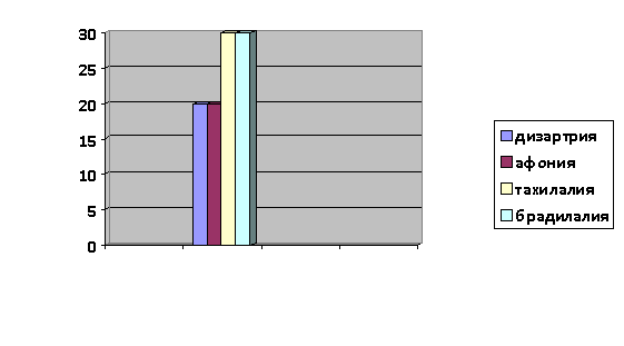 тахилалией, заиканием, ринолалией, дислалией, дисграфией. Их основным симптомом