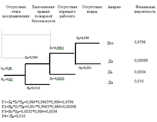 . По сценарию №3 построены деревья отказов, деревья событий. В результате
