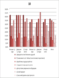 наибольший, среди юношей 1,2 курсов (25%), при этом видно, что в общем на