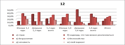 из рисунка 1 видно, что испытывают спокойствие девушки 3,4 курсов( 40.9% от