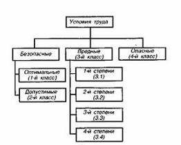 условий и характера труда: оптимальные, допустимые, вредные и опасные -