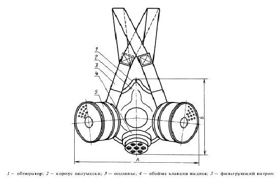 трехслойную полумаску, оборудованную клапанами вдоха и выдоха, которые