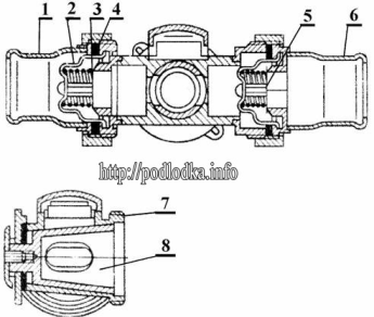 сочетание двух клапанов: основного - клапана-мембраны 5 и обратного резинового