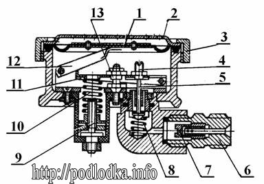 регулируется винтом 4 и гайкой 13. Усилие открытия регулируется винтом 9,