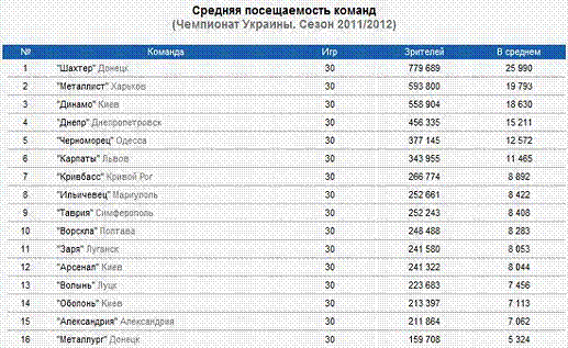 Відвідуваність української Прем’єр-ліги сезону 2011/2012
