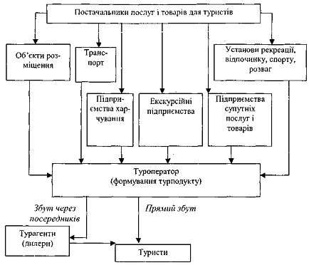 у створенні турпродукту та його реалізації через туристичні підприємства того