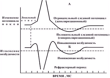 возбудимость в ходе возбуждения. На рисунке видно, что период локального ответа