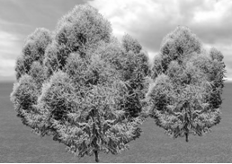 густою, чітко окресленою кроною. Загальний вигляд дерев трохи жалібний, суворий