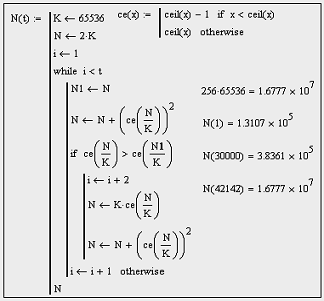 Вот решение этого уравнения в системе MathCAD (здесь τ = 1, время измеряется в циклах).