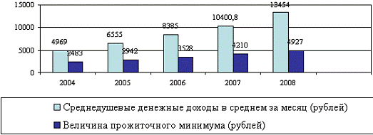 денежными доходами ниже величины прожиточного минимума, в % к общей