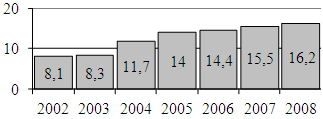 За последнее десятилетие наблюдается устойчивая тенденция к уменьшению