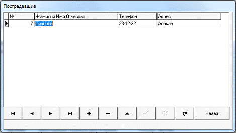 Cells [2,4]: ='Адрес';. Cells [2,5]: ='Дата';. Cells [2,6]: ='Последствие';. Active: =true;: =3;. First;a: =0 to