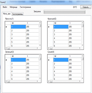 3.1 Расчет таблицы яркостей. Построение гистограмм
