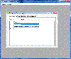 Если вход осуществил «Студент», на экране отобразится форма StudForm. Форма состоит из вкладок, на каждой