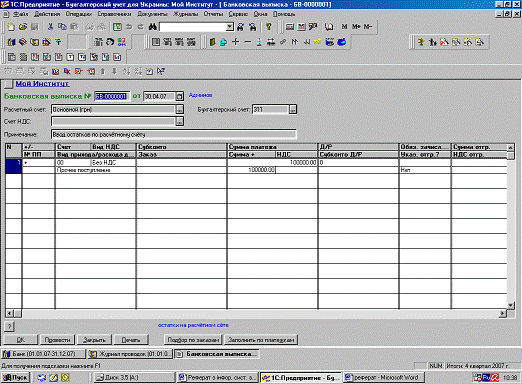 Рис. 3.1 Описание проводки «Банковская выписка»