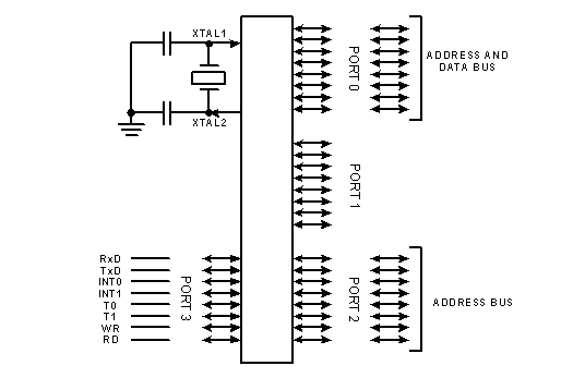 "голой" микроЭВМ: микропроцессор, память программы, память данных,
