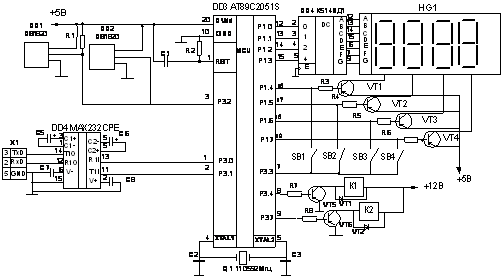 семисегментного индикатора (8 портов) и исполняющего устройства (2 порт). Для