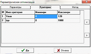 5.4 Диалоговые окна «Параметрическая оптимизация»