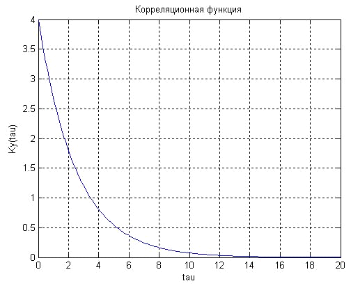 xlabel('tau'); %подпись к оси ОХ('Ky(tau)');('Корреляционная