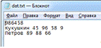 создадим текстовый файл dat с номером группы на первой строке и списком с несколькими