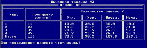 вывести в файл или на экран выходную таблицу вида, представленного на таблице