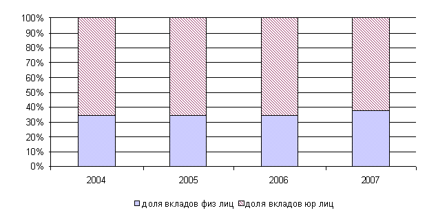банковской системе. Так, в 2007 году резких изменений в структуре вкладов
