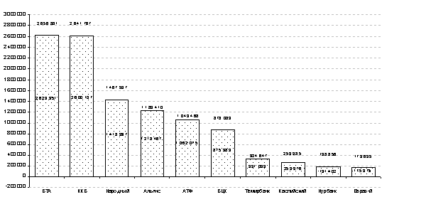 Рисунок 7. Активы десяти крупнейших банков Республики Казахстан на начало