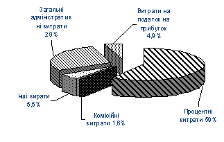 наступною: процентні витрати становили 145388тис.грн. (59%), комісійні витрати