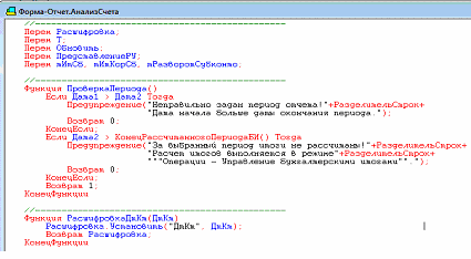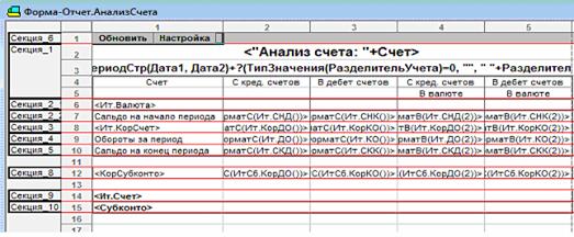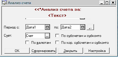 такие как: отчет карточка счета, отчет анализ счета, а также корректировать