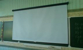 центр. Держа экран над доской, проверил ровно ли висит экран, и определил куда