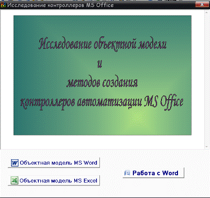 системи дослідження методів створення контролерів автоматизації додатків MS Office. Розроблена система може використовуватися в