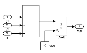 объёма жидкости в ёмкости определяется функциями объёмных расходов