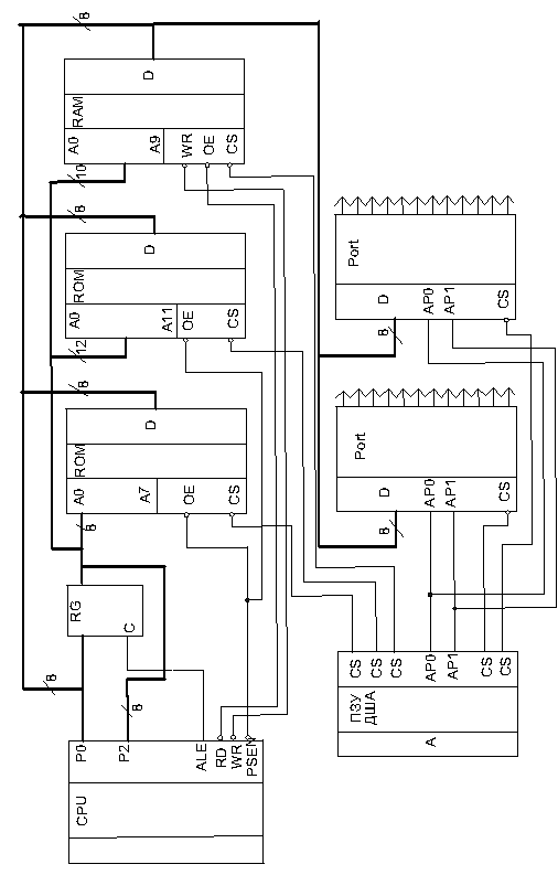 порт Р0 выполняет роль совмещенной шины адреса/данных, а Р2 - шины старшей
