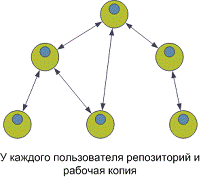 передают свои изменения на центральный сервер, когда считают нужным, в