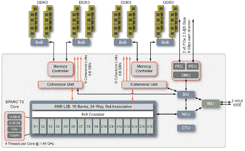Обеспечивая интегрированные сети на кристалле, процессор SPARC T3 в состоянии обеспечить